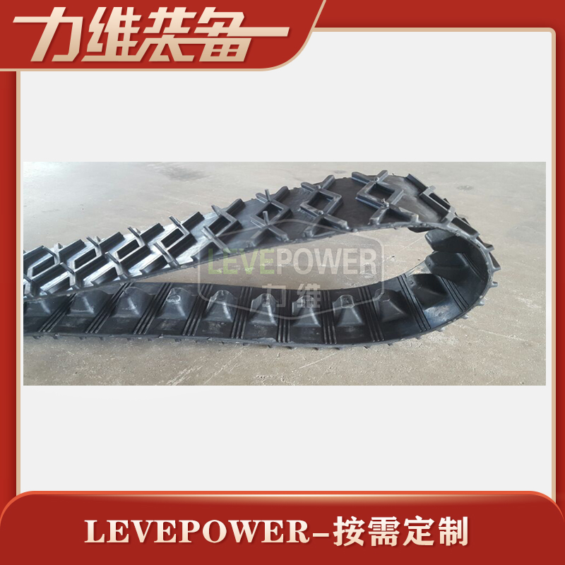 此產品采用復合橡膠橡膠,內置高強度芳綸,外花紋偏向于平紋,采用網格狀設計,大限度的增大了履帶的接地面積,履帶式底盤裝上此產品走起來非常平穩。