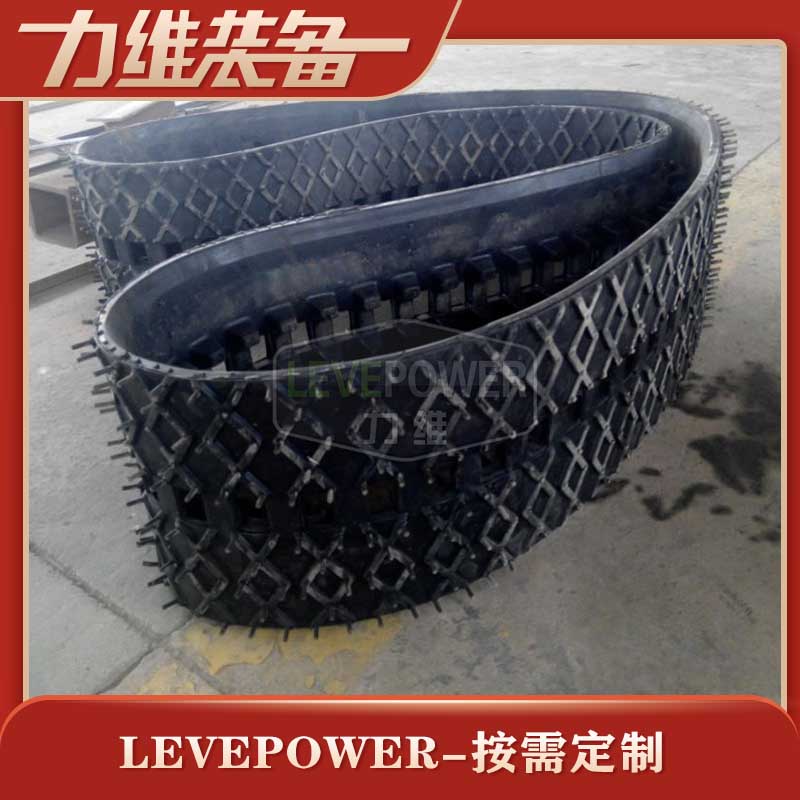 該履帶外花紋采用網狀花紋,行走起來特別安穩。內置高強鑄鋼件,高強纖維線,主要應用在農業機械以及工程上使用,該產品重量輕、不傷害植被、耐磨等優點,并可以在復雜地形使用,屬于全地形產品。該產品被廣泛應用在履帶式底盤、履帶式運輸車、遠程遙控機器人等產品。