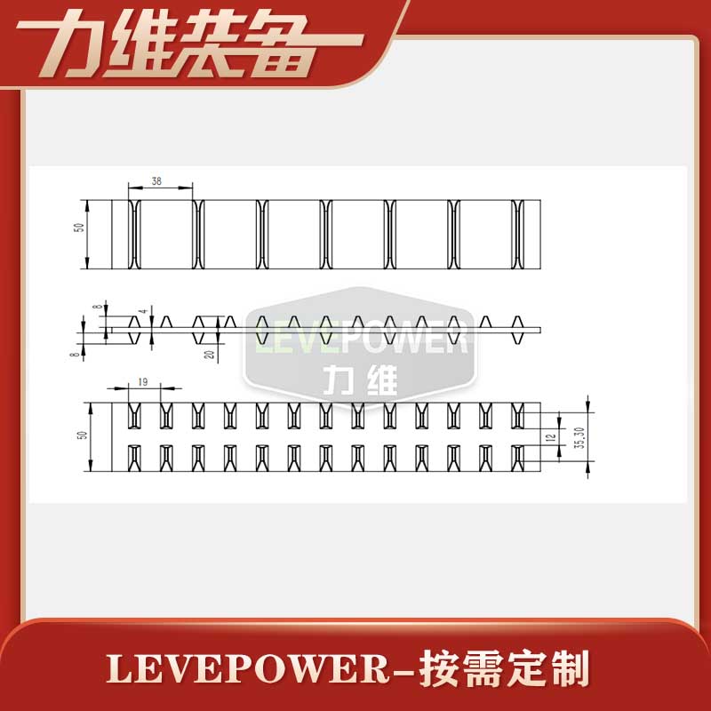 此履帶為撥齒履帶,外花紋采用圓滑橫紋花紋,內齒采用密集三角細齒設計,對稱于帶體兩側,輕巧耐磨,是一款適合用于機器人底盤機械臂的配套履帶。