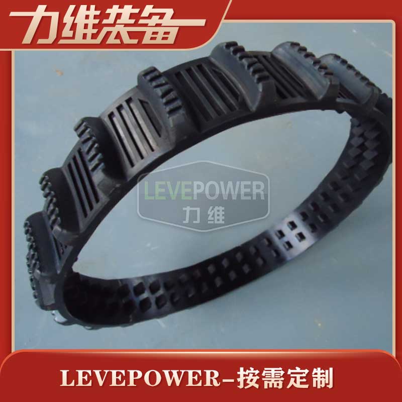 此履帶為撥齒履帶,外花紋采用波浪形長條結(jié)構(gòu)設(shè)計(jì),和GMD-A履帶一般配套使用,內(nèi)齒采用密度三角形設(shè)計(jì),采用驅(qū)動(dòng)輪撥動(dòng)雙齒的方式,此產(chǎn)品采用特種橡膠材料,內(nèi)置凱夫拉纖維,此種纖維輕單抗拉能力很強(qiáng),此款柔軟輕巧,攀爬力很強(qiáng),是一款非常耐磨橡膠履帶,非常適合配套于履帶式電動(dòng)底盤無線遙控底盤上使用。