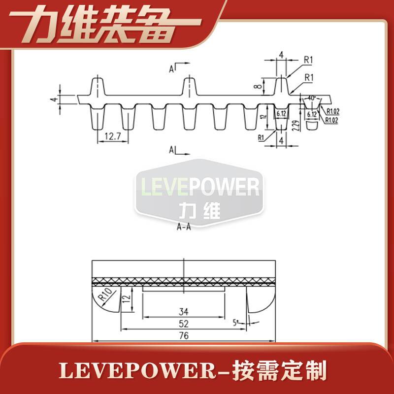 此款履帶外花紋直角長條細紋,距離適中。內齒中間矩形矮齒,履帶內齒兩側高齒保護,兩邊此花紋抓地力較強,便于攀爬樓梯、越障等環境。特別適合用于機器人底盤配套使用。