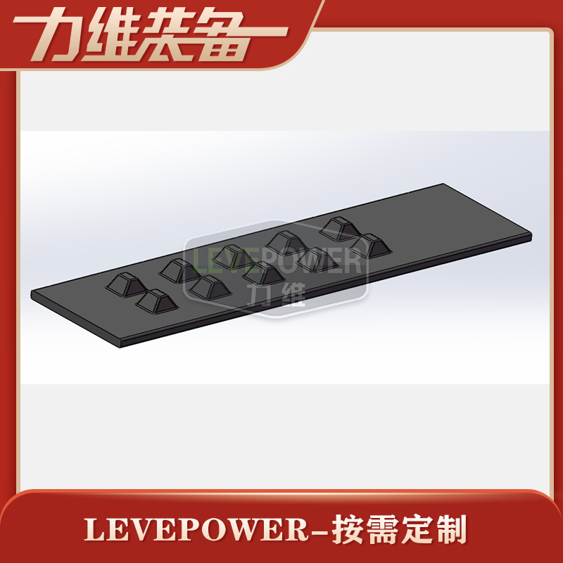 履帶外花紋采用圓滑不規(guī)則塊狀設(shè)計(jì),內(nèi)齒節(jié)距密度采用高齒三角居中設(shè)計(jì)。此設(shè)計(jì)主要提高了履帶的抓地力,帶體設(shè)計(jì)很薄,適用于雪地、沙地底盤系統(tǒng)等使用。