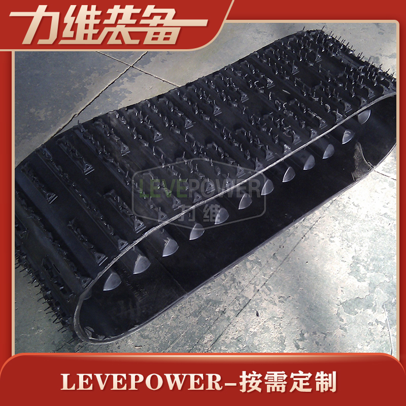 此款耐磨橡膠履帶外花紋采用不規(guī)則高花紋外形設(shè)計(jì),內(nèi)齒設(shè)計(jì)為高齒梯形,內(nèi)置高強(qiáng)度鑄鋼件,此款抓地力較強(qiáng),適合草地、雪地、柏油路多種地形。
