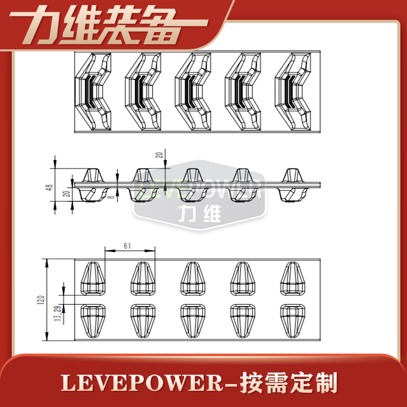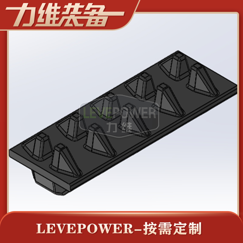 此款橡膠履帶外花紋采用較大塊狀外花紋設(shè)計,內(nèi)齒設(shè)計為貼邊兩側(cè)大梯形角內(nèi)齒,絕對不會出現(xiàn)脫帶問題。適合機器人底盤等機配套使用。