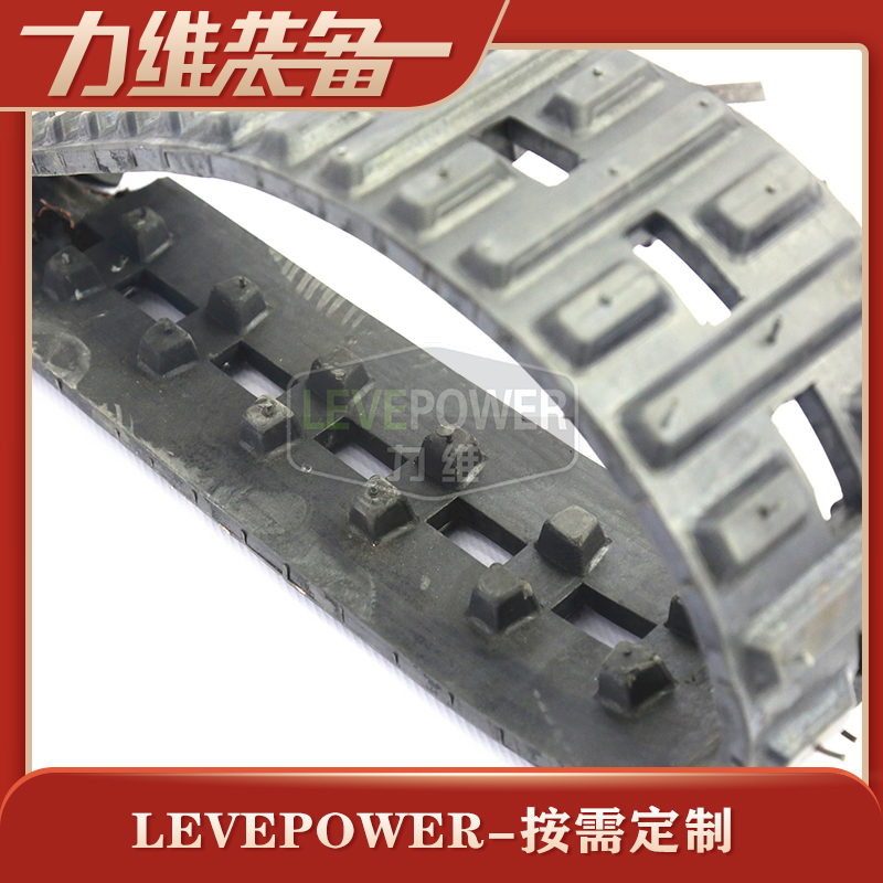 此款特種橡膠履帶外花紋采用矮齒矩形長(zhǎng)條和矩形短條相見(jiàn)設(shè)計(jì),內(nèi)齒設(shè)計(jì)為梯形適中內(nèi)齒設(shè)計(jì),內(nèi)置螺紋鋼結(jié)構(gòu)支架。此款履帶抓離地和平穩(wěn)性都非常好。