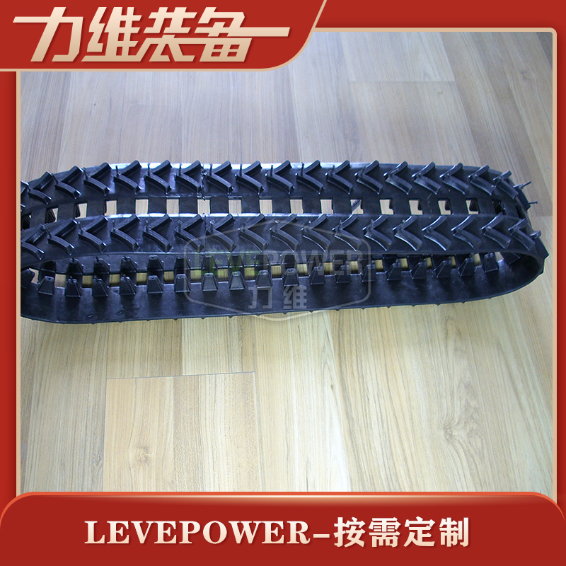 此履帶為插齒履帶,外花紋采用細人字花紋設計,內齒采用長條梯形設計,節距適中,履帶內置螺紋鋼,此款履帶帶體很薄,載重量較輕,是一款輕巧的全地形橡膠履帶。此產品采用復合耐磨橡膠材料,內置美國杜邦公司凱夫拉纖維,絕非普通的鋼絲,細長鋼骨架適當提高了履帶的載重能力,用于草地、柏油路等硬路面非常適合,此履帶可配套于消防機器人、排爆機器人、無線遙控底盤等底盤系統上上使用。