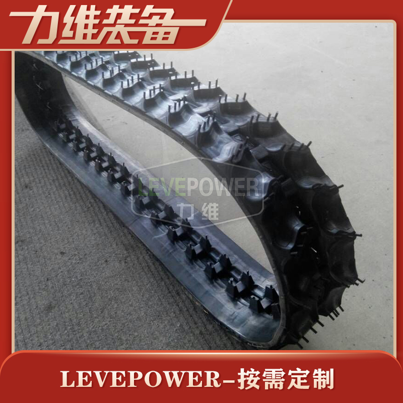 此履帶超高耐磨復合橡膠材料,內置高強度進口纖維,用于室外各種地形,南方的丘陵,山地,沼澤,北方的平原,松土,都可以使用,此產品適合配套于履帶式運輸車或者履帶式底盤上使用。
