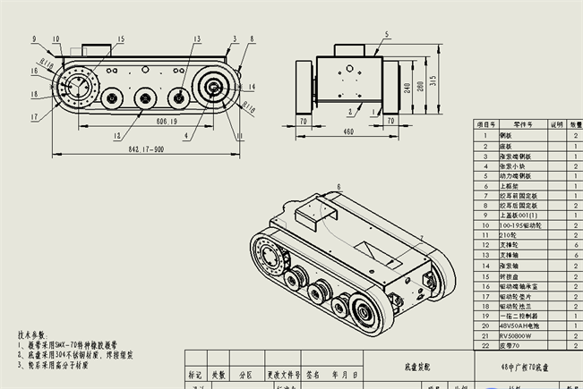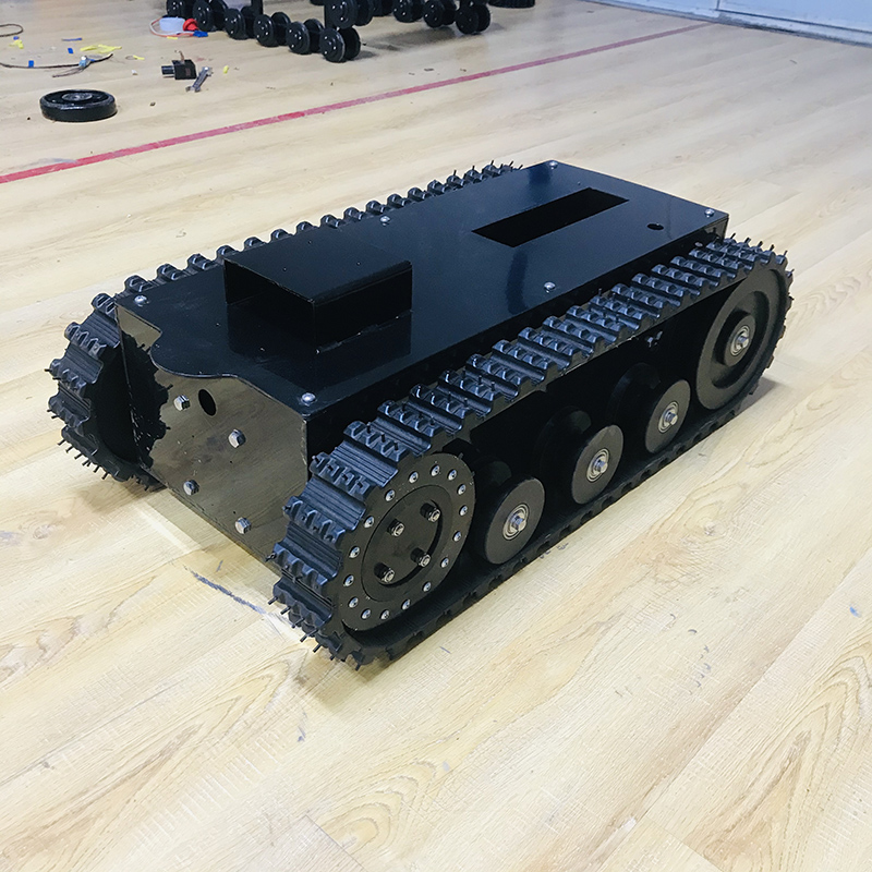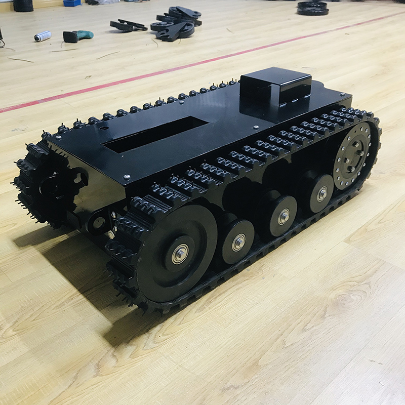 履帶底盤長900mm,履帶底盤寬460mm,履帶底盤高280mm,無線遙控履帶底盤箱體采用鋁合金材質(zhì)焊接而成,防腐性能好。履帶底盤動力采用48V750W直流無刷電機,渦輪蝸桿減速機動力更強,轉(zhuǎn)彎靈活。履帶底盤電池采用48V20AH鋰電池,續(xù)航時間更長,是一款不錯的機器人橡膠履帶。